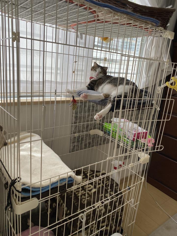 ケージも、引っ張り出し中に入れるようにオープンにしたところ