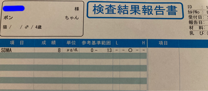 やっと、『ぼん』のSDMAの検査結果の紙を貰ってきました!
