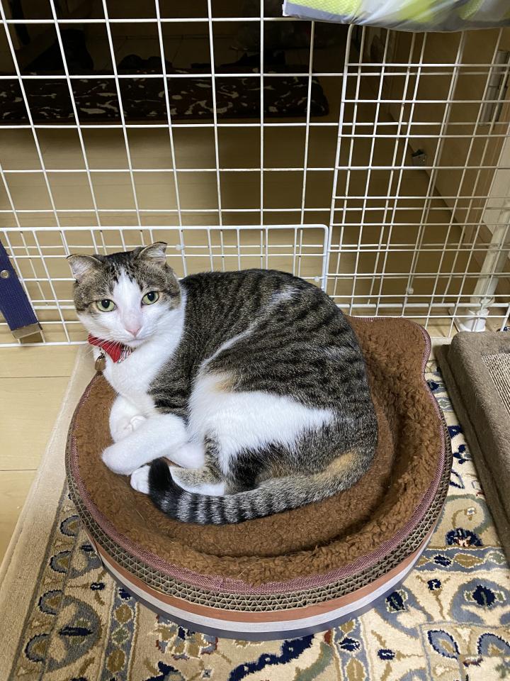キャットタワーに置いたベットが大好きで、いつもここにいます。