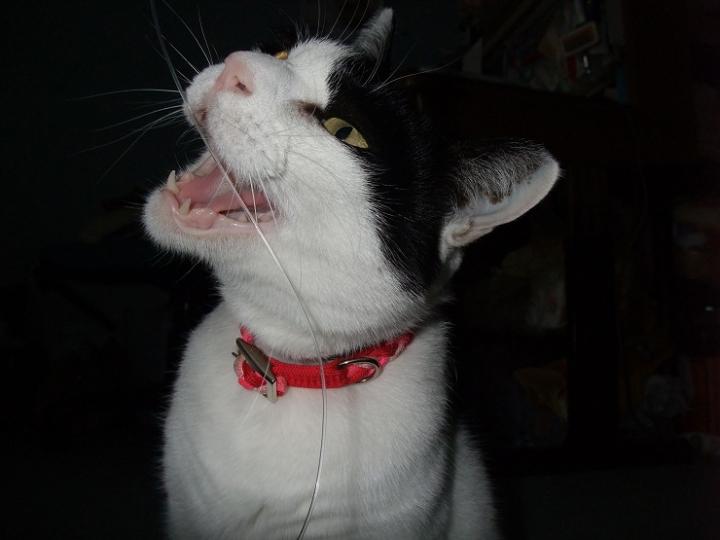 ワイヤーの部分に食いついてきたところを写したらこんな凶悪顔に・・・・・・。