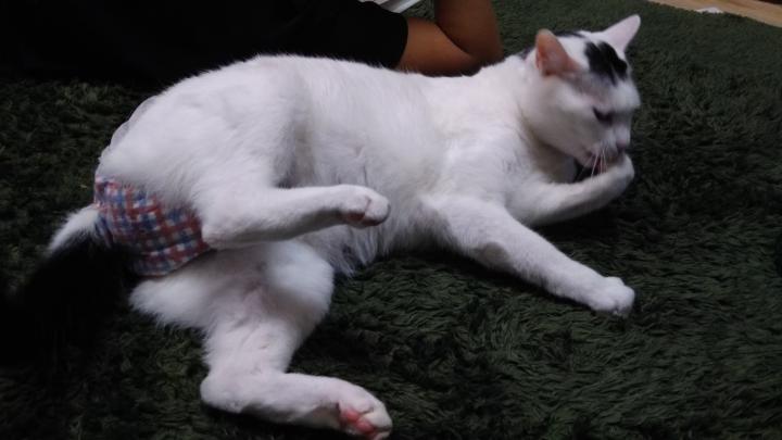 出掛けるときは オムツがズレたりしてカテーテルをかじったり