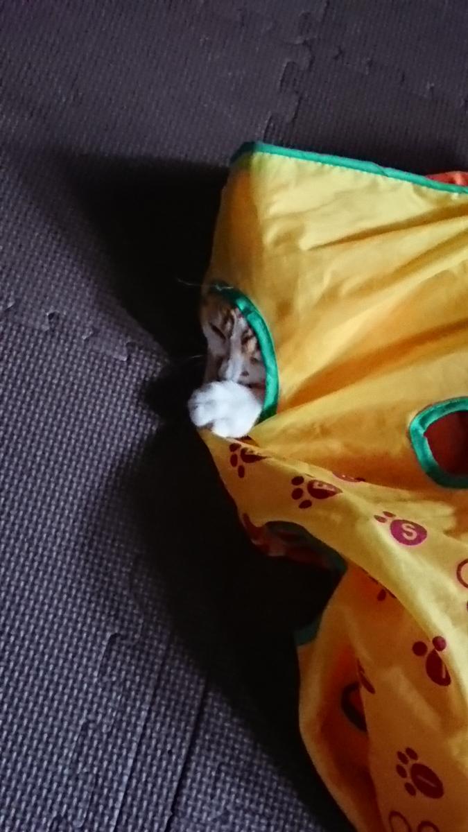 段ボールの底はモフモフの布が入っているので、モミモミする瞑想?に入れるみたいで何が楽しいのか2匹一緒に入っている時もあります。