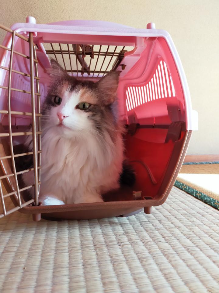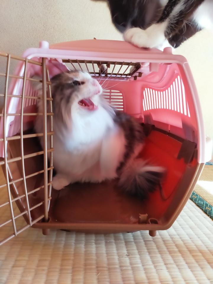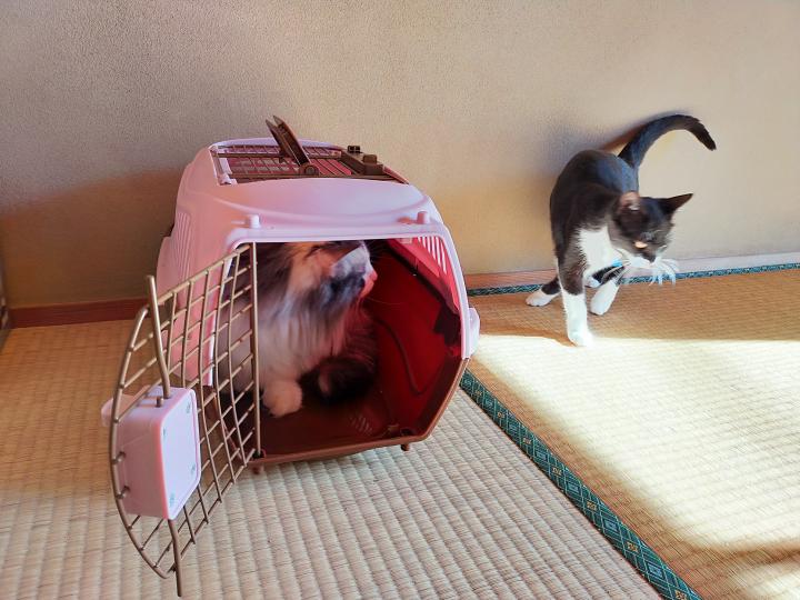どうして自分のキャリーには中々入ってくれないのに、れんちゃんの方には入るんだい?😅