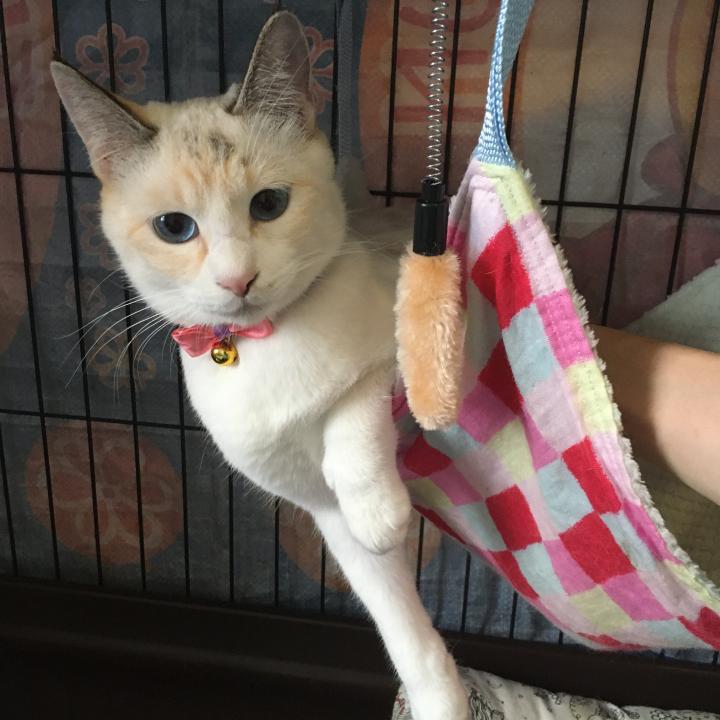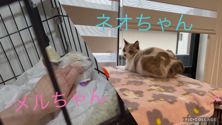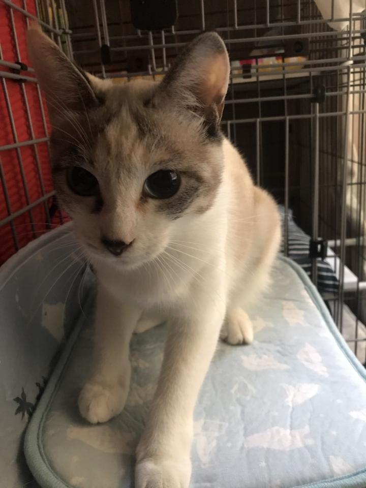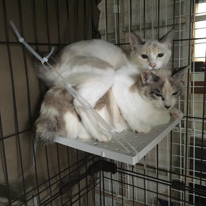 で、本命のめっちゃビビりのシャム系姉妹さん。ほんのおチビの頃に捕獲されて以来、ずっと頑張ってシャーシャー言ってた気合いの入った2匹です。