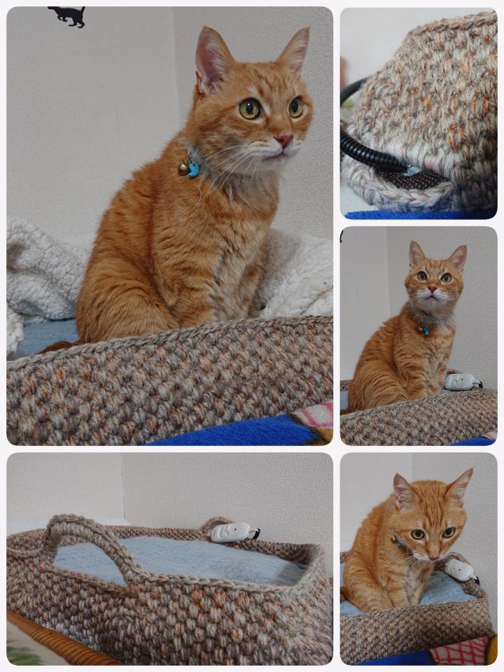 ピースと杏が一緒に眠れるように、ホットマットを敷いて、コードが出せる穴を作りました。これで、真冬でも暖かく過ごせると思います☺️