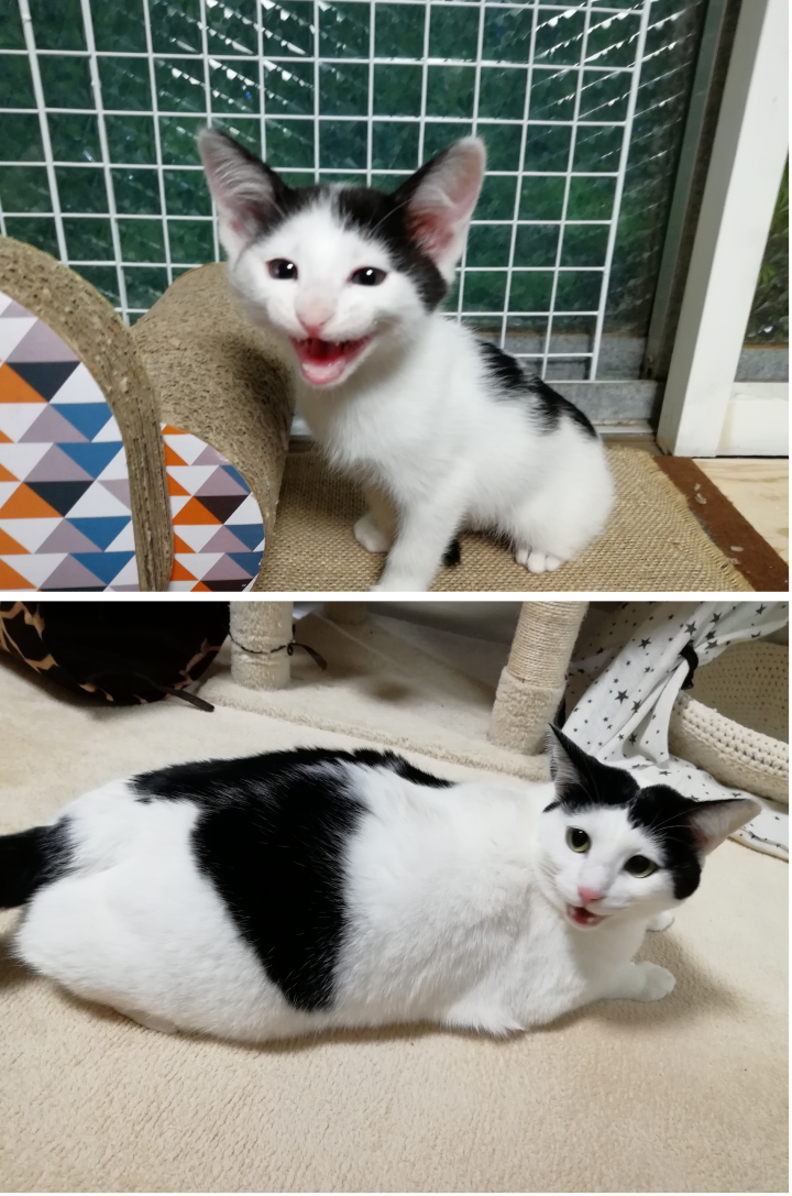 「ア!!ア!!」とお返事しながら駆けて来ますし、足元で「ワシャワシャしてー」とゴロンゴロン、ゴハンのビンにお顔を突っ込むのも相変わらずですし、今朝なんてお水替え中に頭突きを食らわされ、そこら中水浸し(笑)