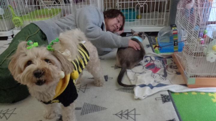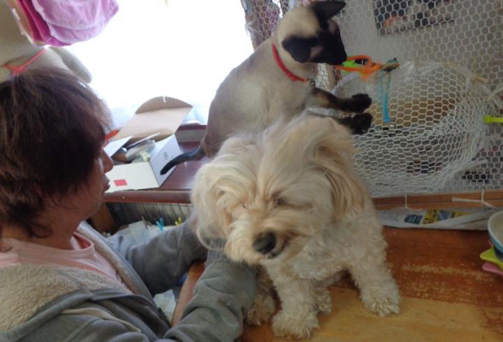 👩「福ちゃん😼が 端っこに居るから ポニョ😻、乗ってみるかい? ヨイショっとツーショット💕💕」