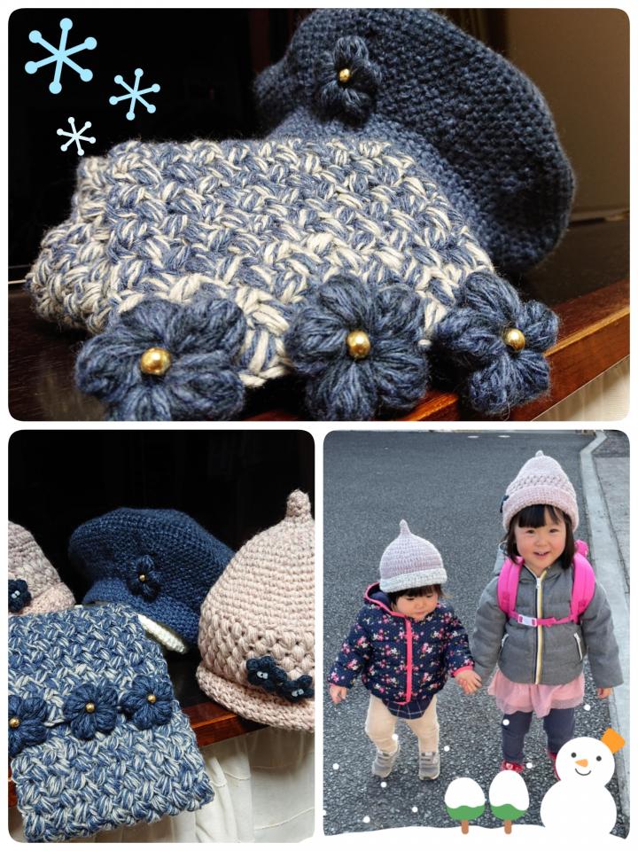 孫にはどんぐり帽子、お嫁ちゃんにはマフラーとベレー帽です🤗