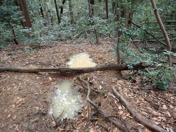猪🐗や鹿🦌が体についた虫(マダニ)などを洗い落とす水溜まりです。