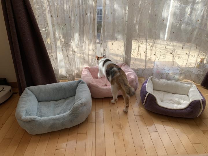 案の定 もっちゃんが寝ているネコベッドに 強引に入り込みました😫💦キャー