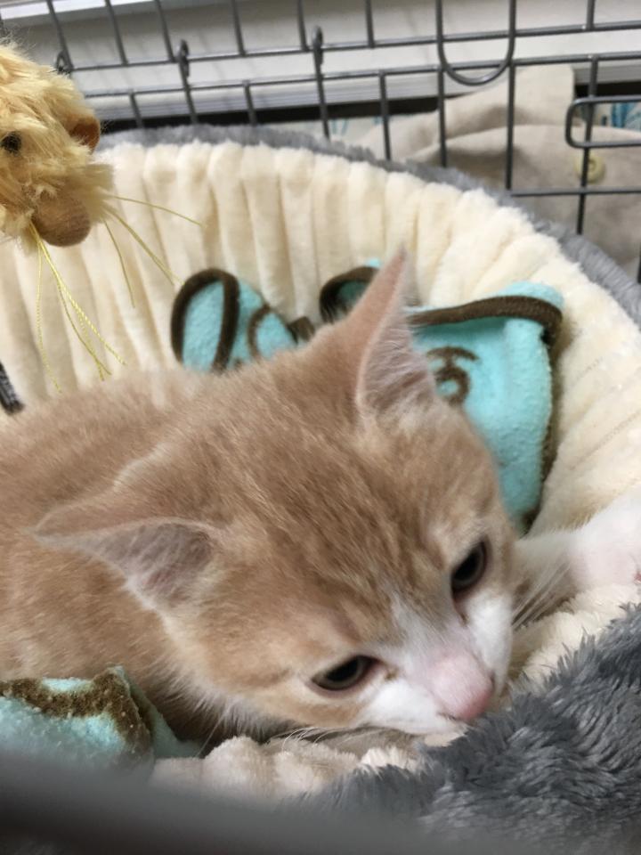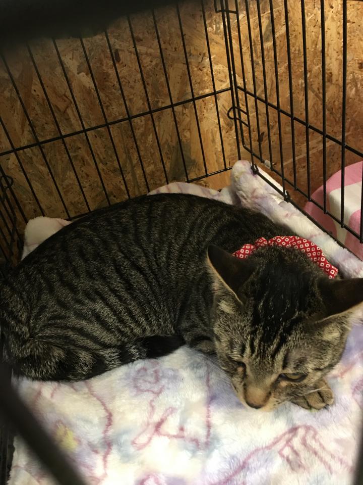 譲渡会慣れ?したのか、ずっとお尻を見せながら寝てばかりのゆずちゃん、ケージの向きを変えても、また後ろ姿😅