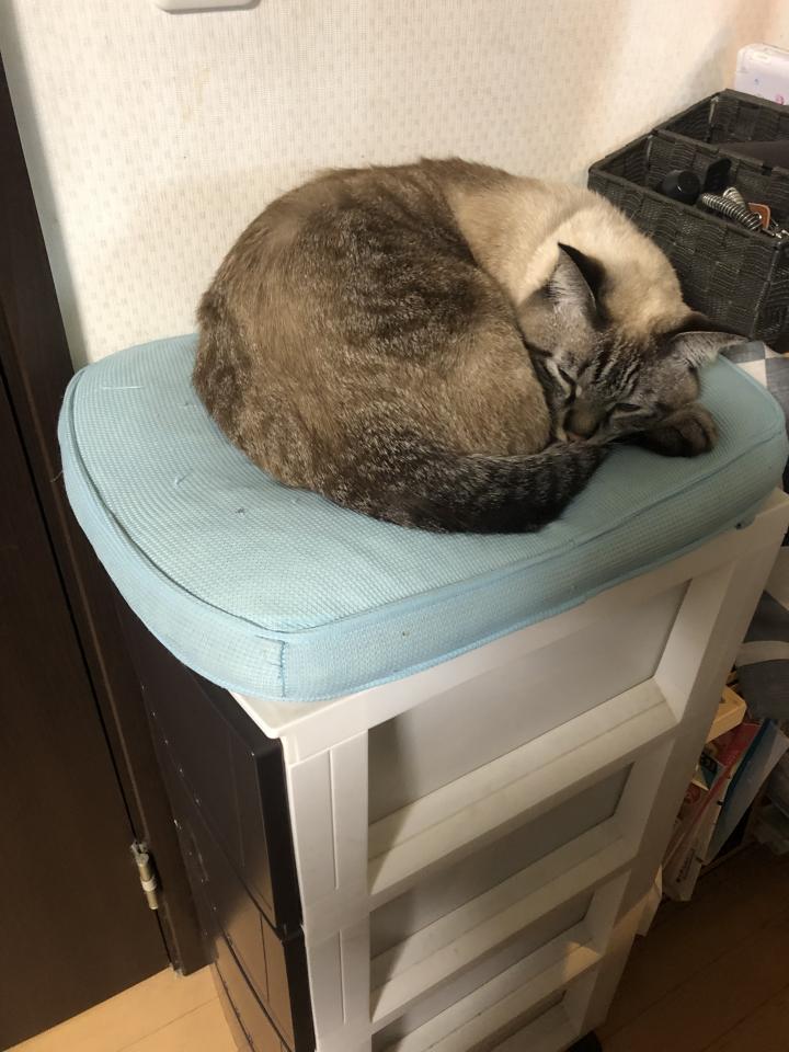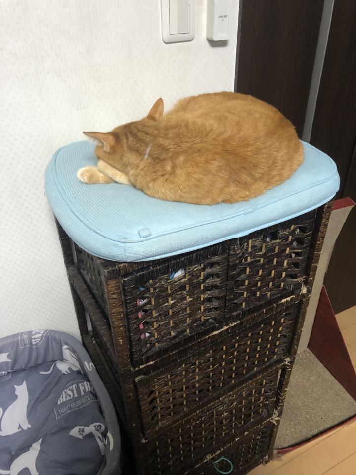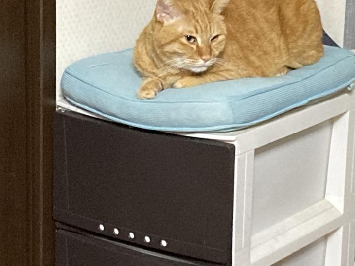 てなわけで、2階から収納棚を持って来て、同じ座布団を敷いたら・・・!