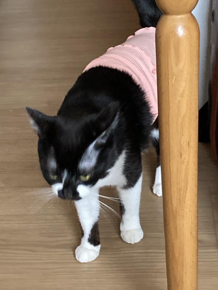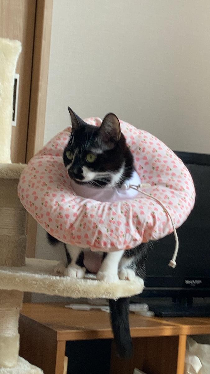 傷口を舐めないなら付けないのに…(´-ω-`)