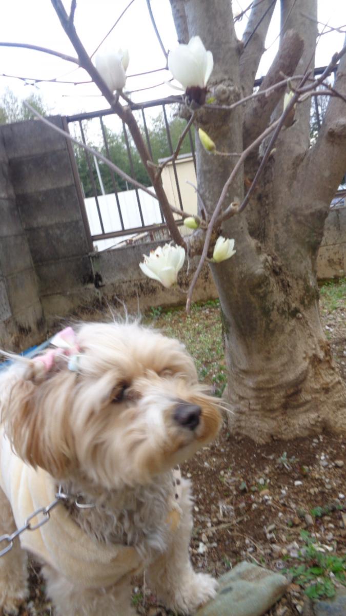 大五郎🐶「母ちゃん、昨日も モクレンさん、咲いてたんだよ✨」