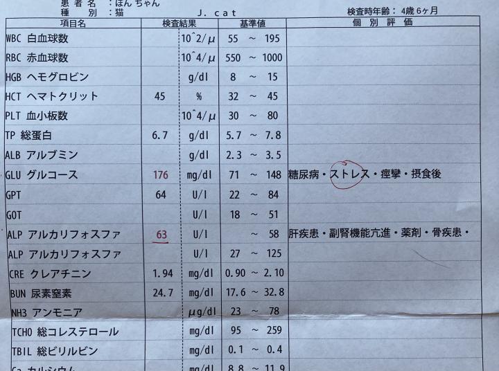 それと今回、グルコースが高いけど【たぶん】ストレスかな?