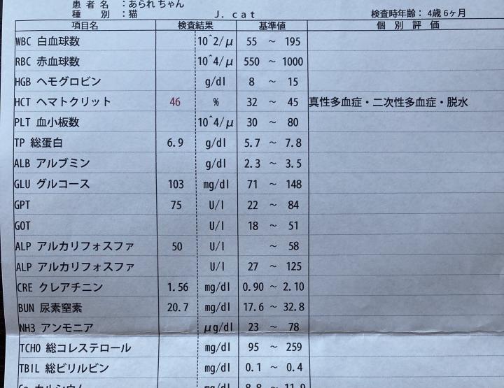 最近、クレアチニンが基準値内になってきたらSDMAも一緒に基準値内。