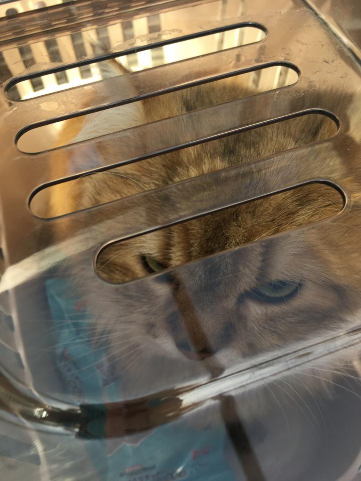 私、はい。なかなかキャリーケースに入ってくれなくて💦