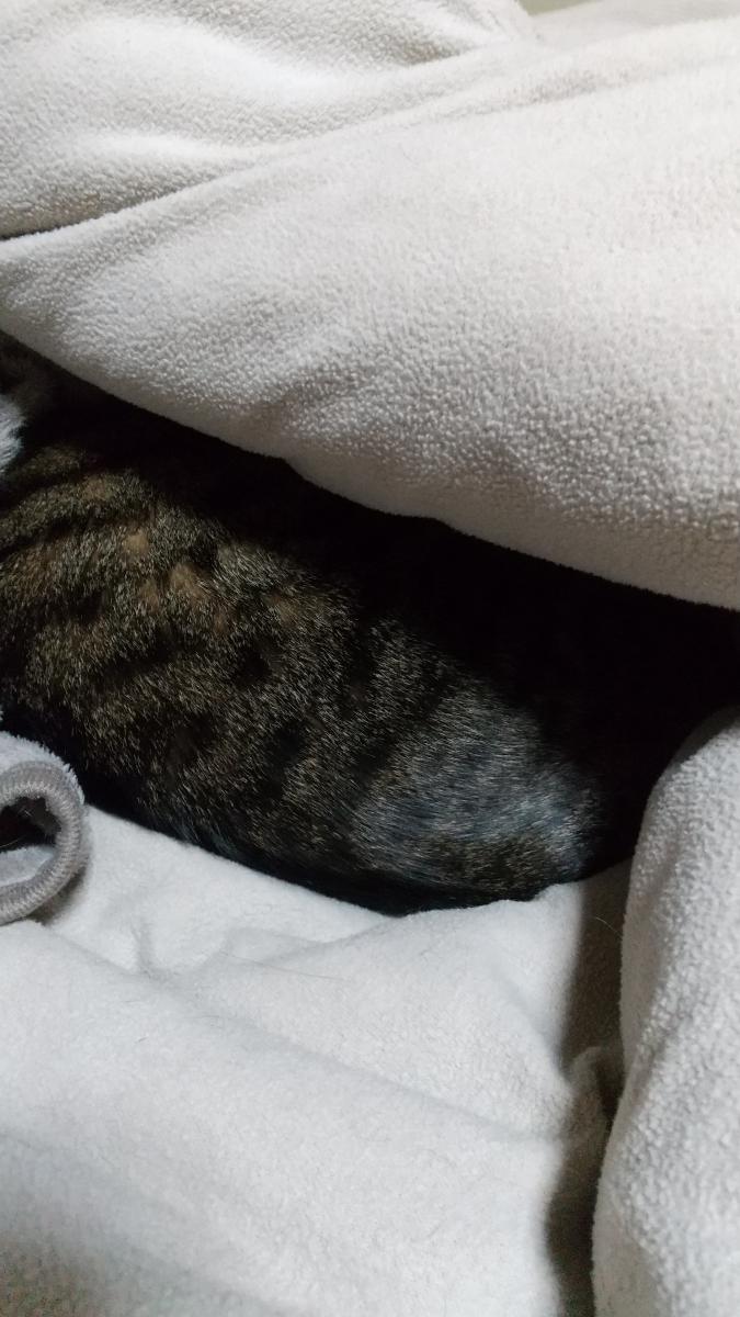 布団折られた中に入り込んで何時間と経つけどコネる用の毛布も下敷きにしてて洗えない