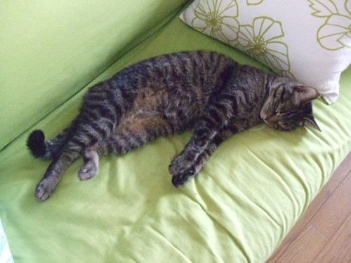 2007年末、マンションの前で鳴いていたキジトラちゃんを保護し、現在仲良く暮らしてます。 可愛い顔して食い意地張ってる ねころん! 名前の通り、ころんころんにならないでね〜!!