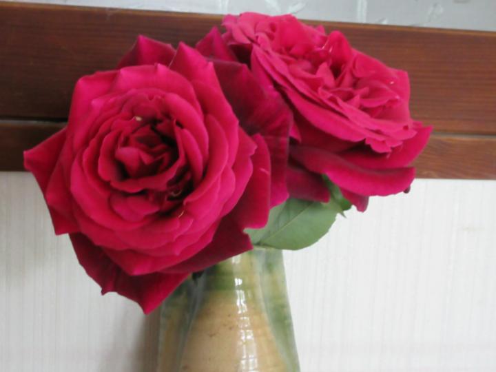 薔薇が咲きました イングリットバークマンという名の薔薇はものすごいよい香りです