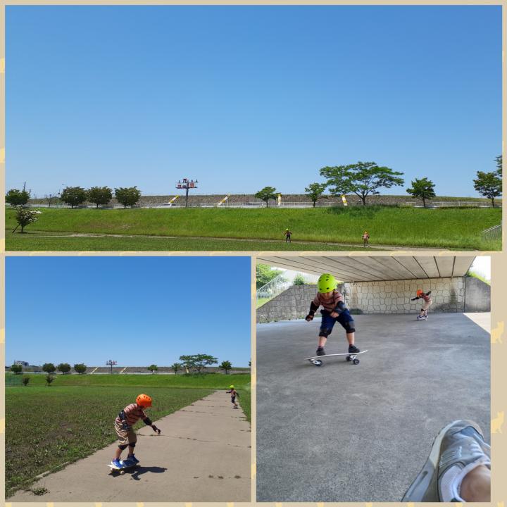 スケボとは滑走のコースが違うこむすびたちは滑りたいように滑れないし。