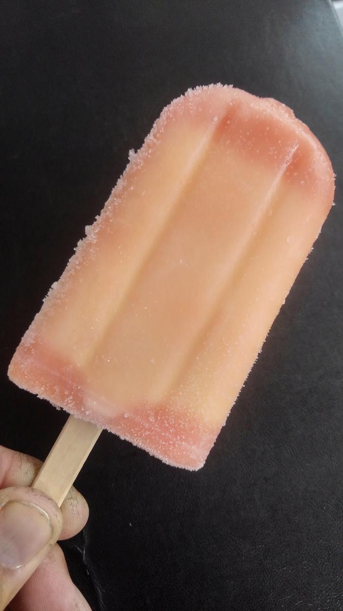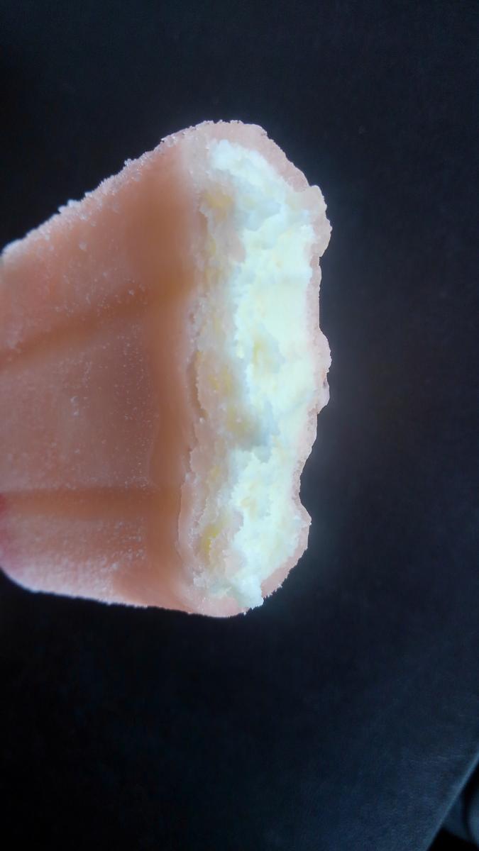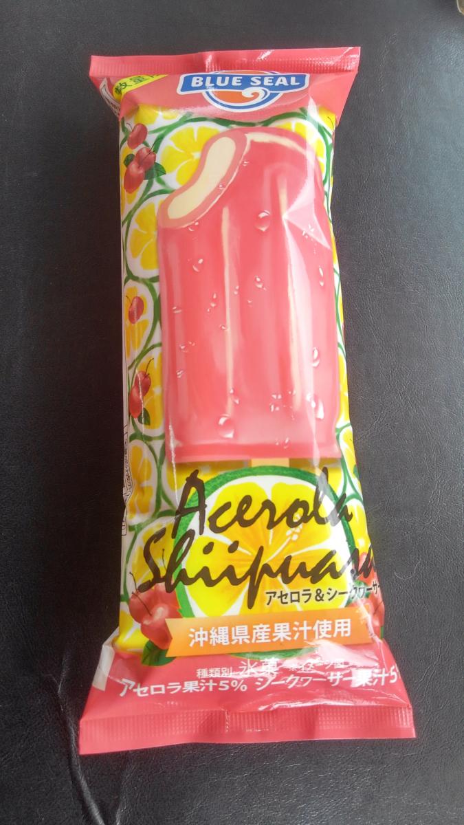 製法は二層構造、外側の赤っぽいところがアセロラ味、酸味が強くてサッパリスッキリ、そして中が白いクリーム状でシークァーサー味、こちらはシークァーサーの香りとほんのり酸味で甘めな組み合わせ。