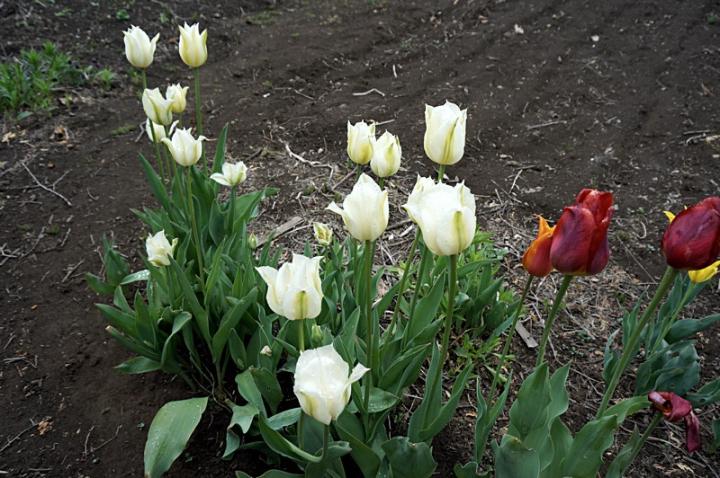 白とグリーンのチューリップ。