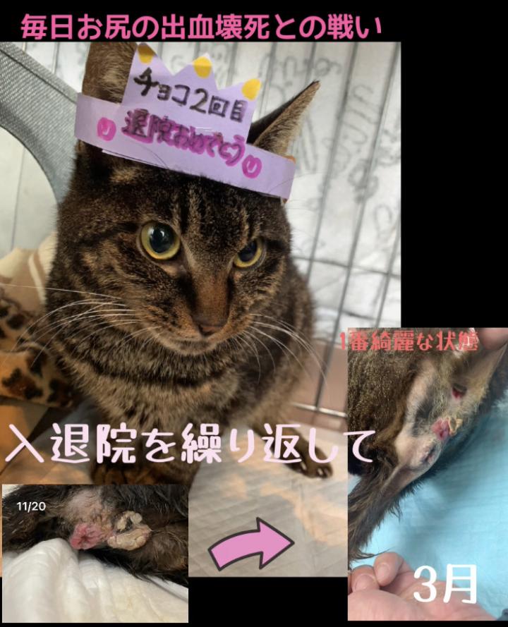地域猫として生活していたチョコが突然ピントだったしっぽを下ろして、糞尿まみれでやってきました。