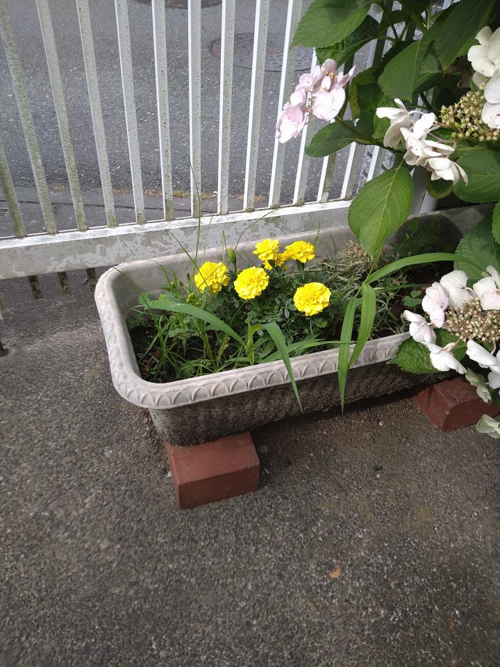 先月、ホームセンターに買い物に行った時に、イベントをやっていて【もらってください!】と無理やり渡されたマリーゴールドが元気に咲いております^^;