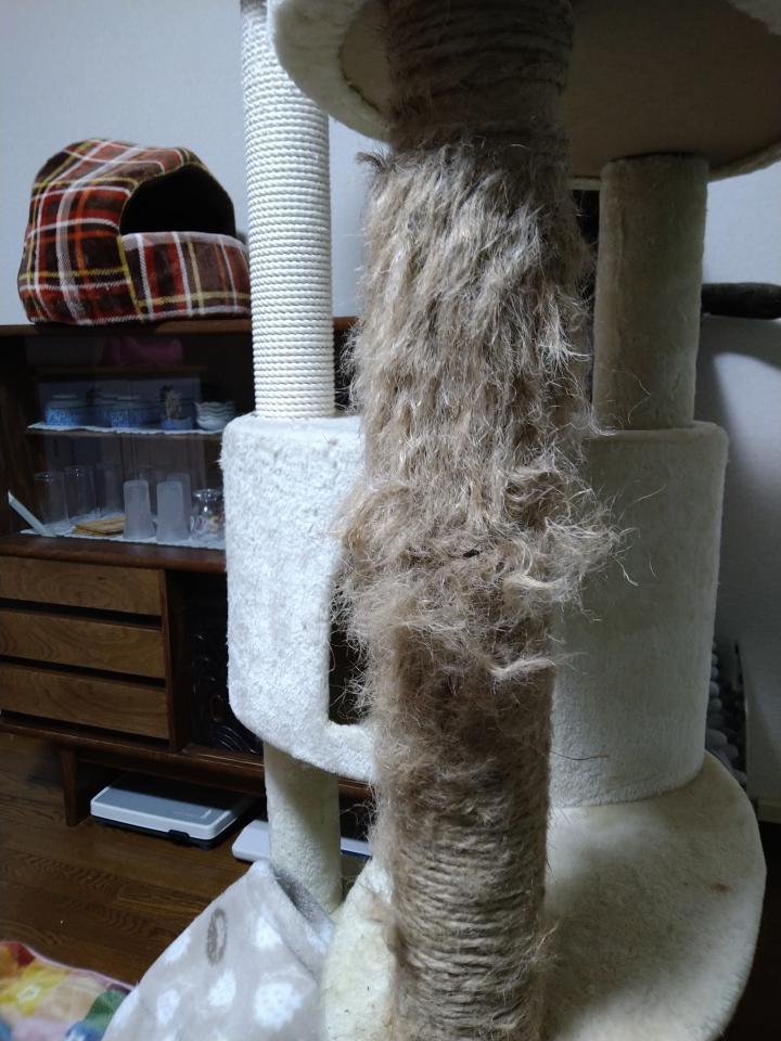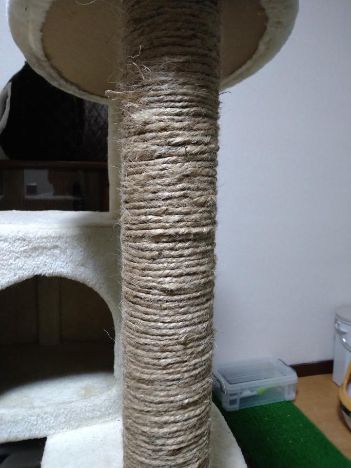 今使ってる麻縄はちょっと素材が柔いのですよね、、、もう少し丈夫なやつが欲しいのですが、近所のホームセンターではなかなか見かけないので今回も同じ素材で新たに巻き直し、、、