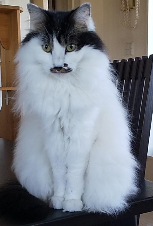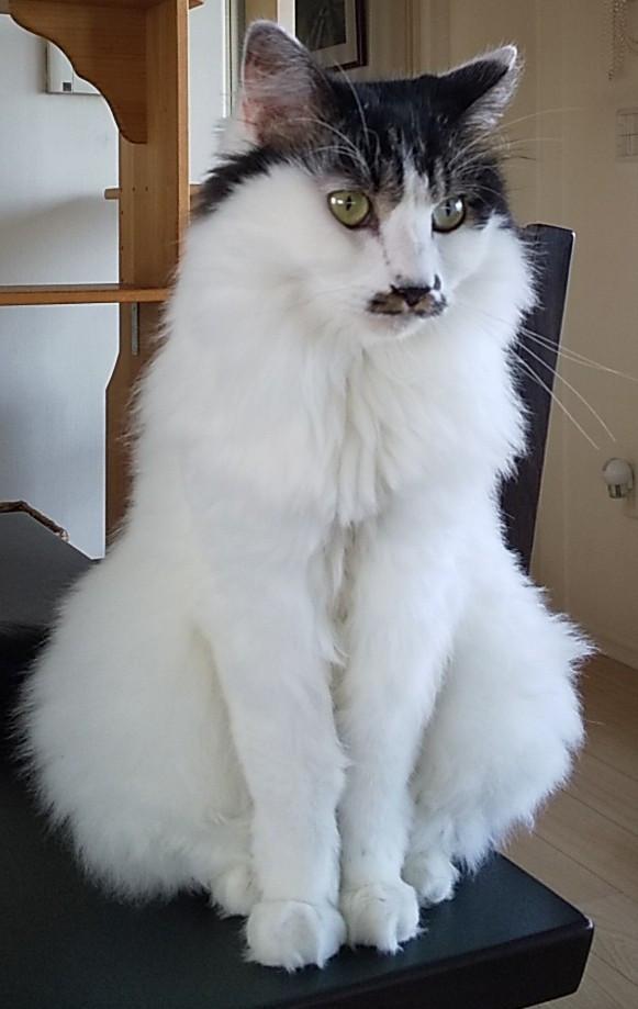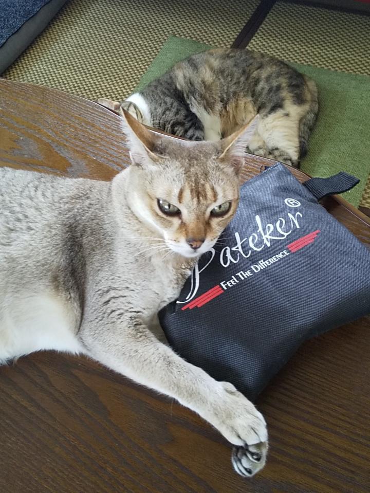 しまい忘れたバリカン袋を抱える短毛代表プラじぃさん。