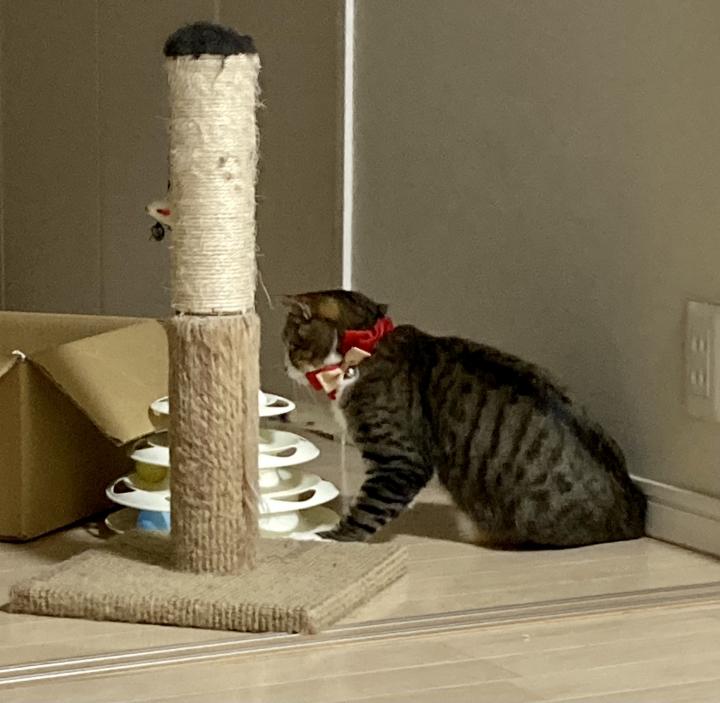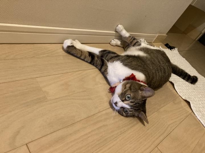 夜、ゆずたんが暗い中でボールをチョイチョイ。ひとり遊びを隠し撮り📷