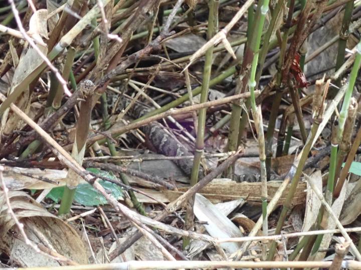 柄はマムシっぽいけど、自分から慌てて逃げてるし笹藪に逃げてからの威嚇もなかったしアオの幼体?と思って写真撮ったけど、画像で見るとマムシっぽいな😓