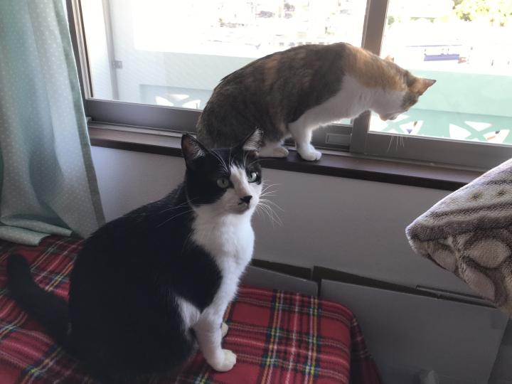 そこで、窓際に登ってくつろげるようにテーブルを配置したり、タロちゃんトイレを隠す入れ物?とミケちゃんがお気に入りだったチェストで段差をつけてみたり。
