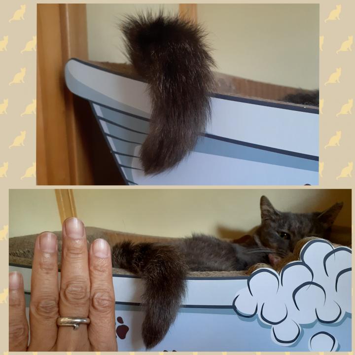 グレちゃん、身体を伸ばしてにゅーんとしっぽが…