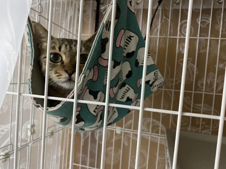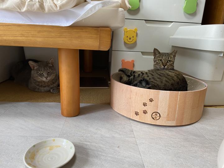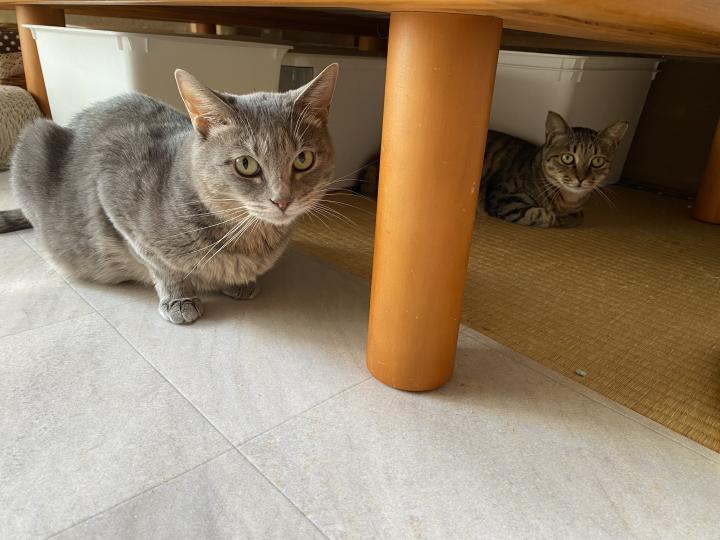 避妊手術の時にウイルス検査して、母子みんにゃ陰性だったから、日中はケージからフリーに。