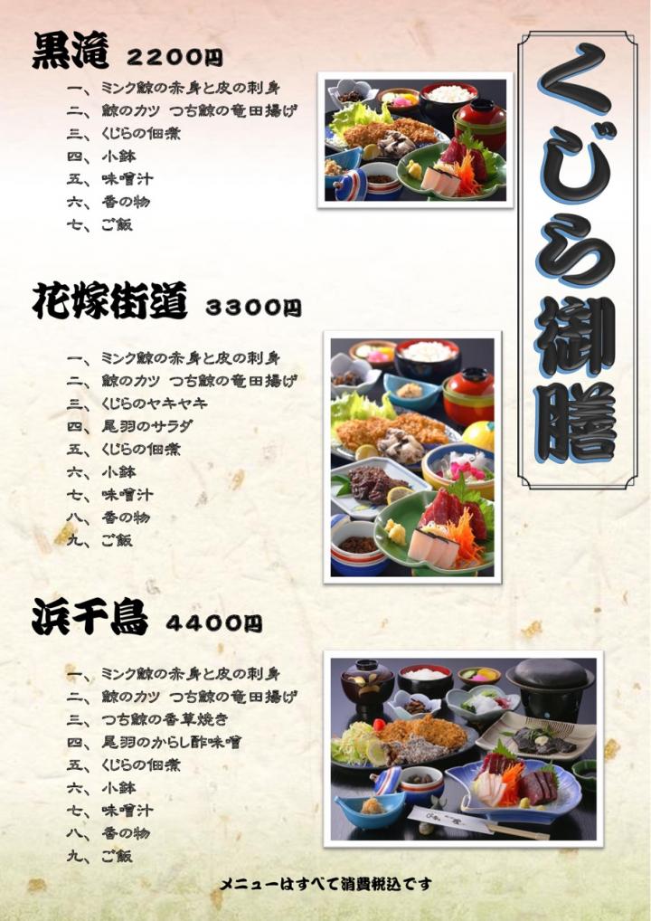 今回は、「くじら御膳(黒滝)」を