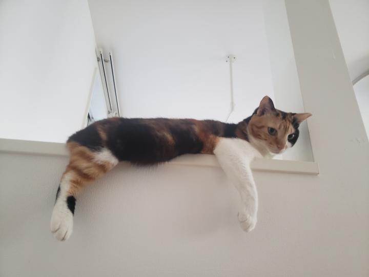 8ヶ月くらいの頃にモヒカンさん(2匹を譲渡してもらった保護施設)でもこんなポーズを夏にしてました。