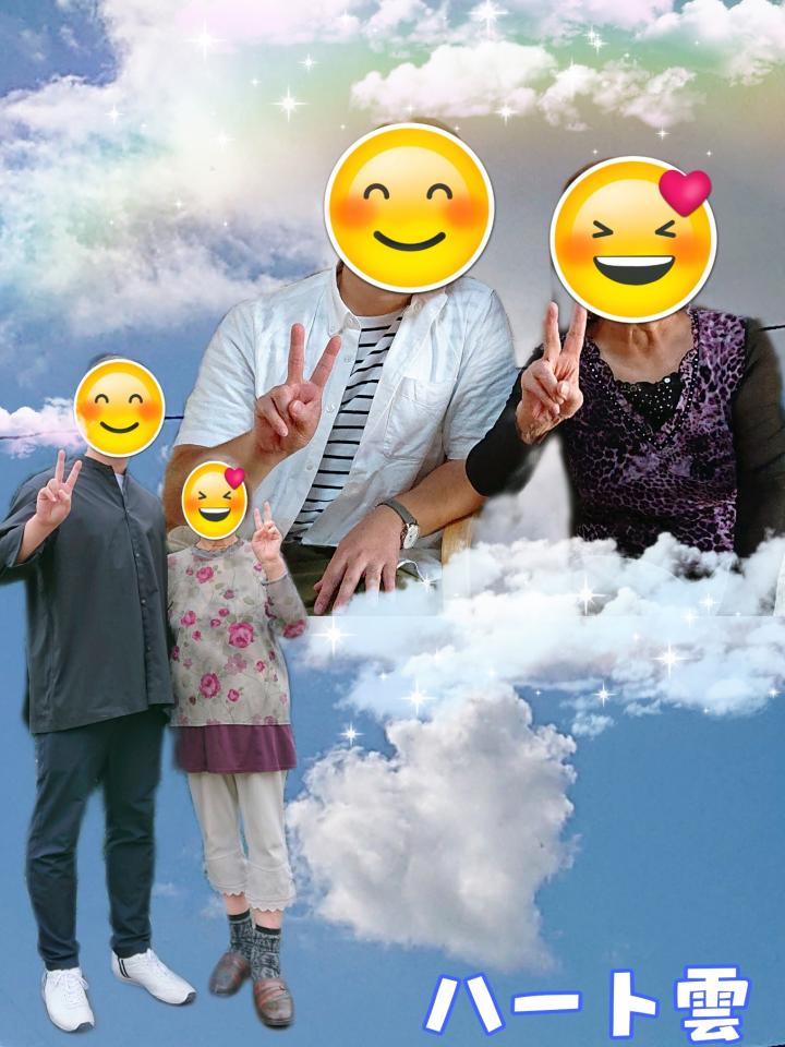 お墓参りの帰りに、偶然見つけたハート雲を背景に。
