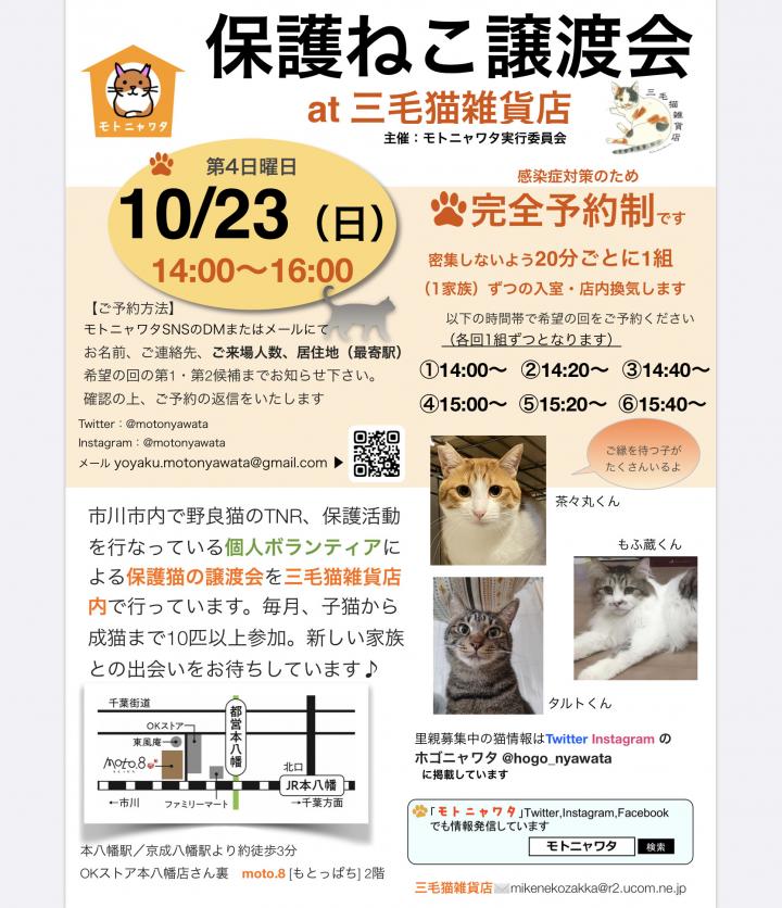 三毛猫雑貨店さんにて定例の譲渡会を開催します。