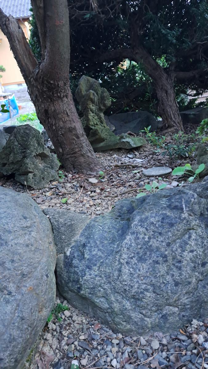 キンモクセイの根元やコロコロしてた庭石の周りにパウダー状にしてもらってあったお骨を散骨しました。