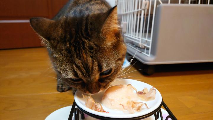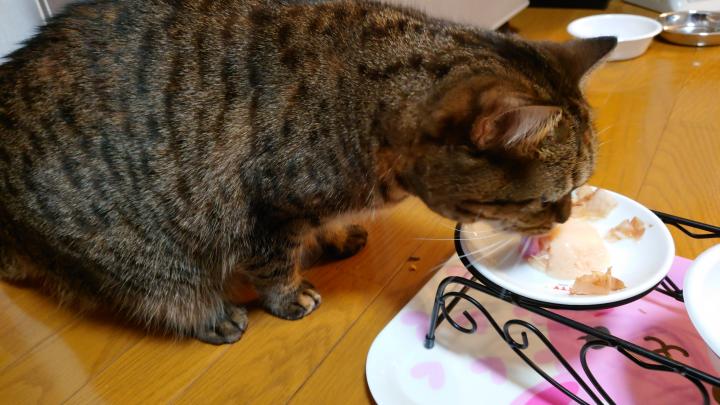 パパが帰ってきてから、ぽんぽんちゅ〜るの鰹節和えをいただきました💖