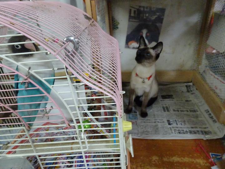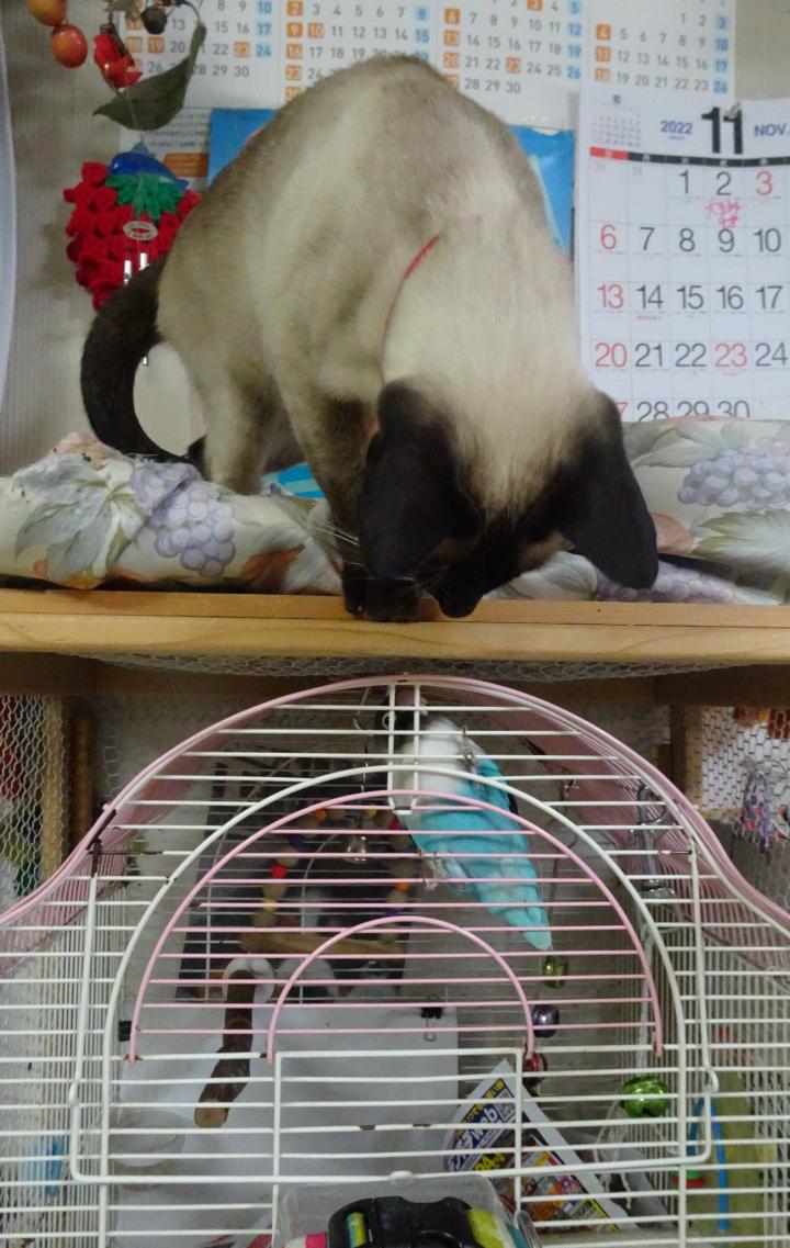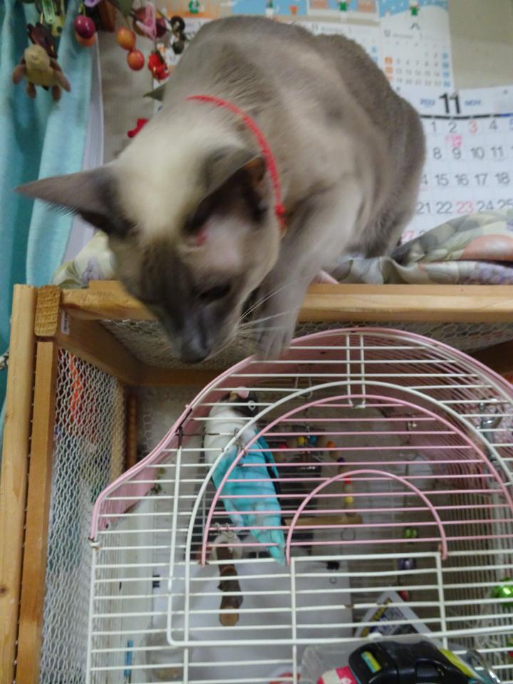 福ちゃん😼「もう、鳥さんは寝る時間よ~(^^♪