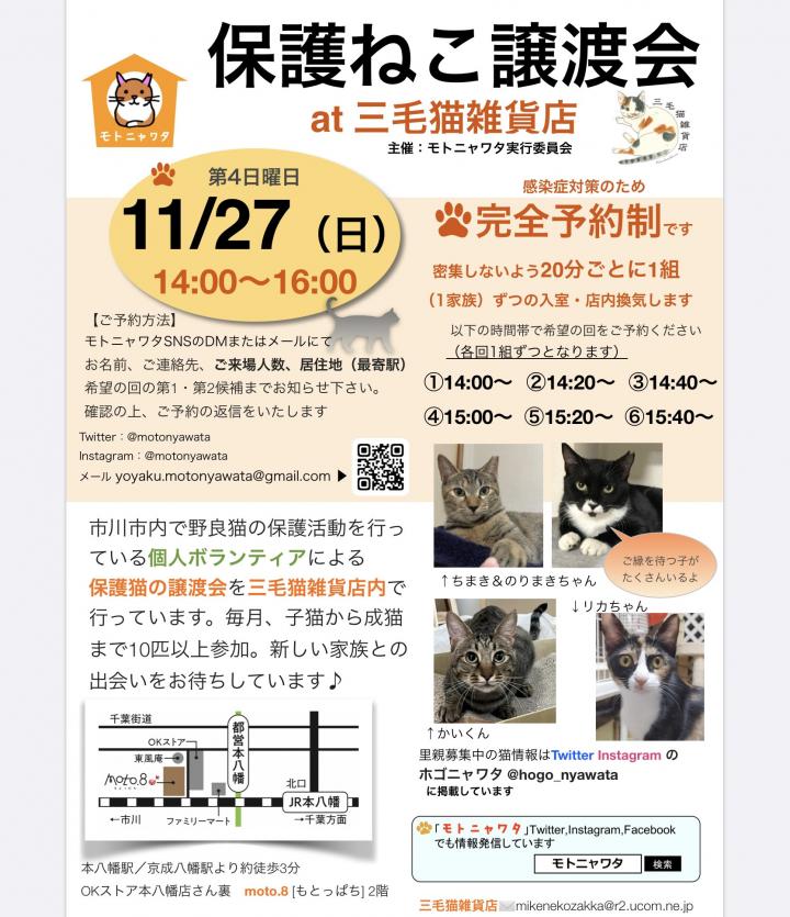 三毛猫雑貨店さんにて定例の譲渡会を開催します。