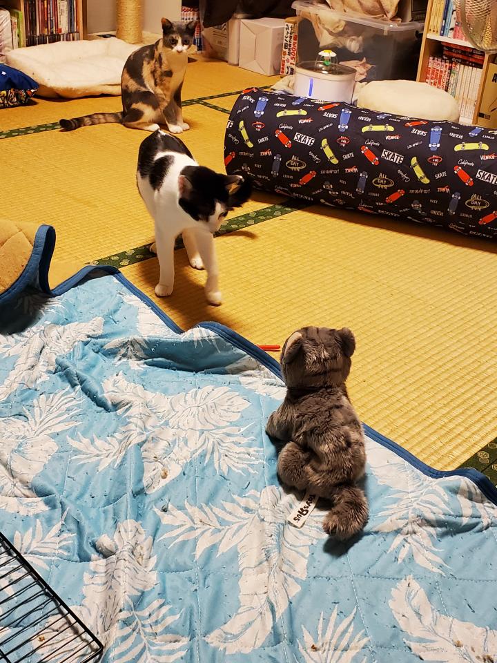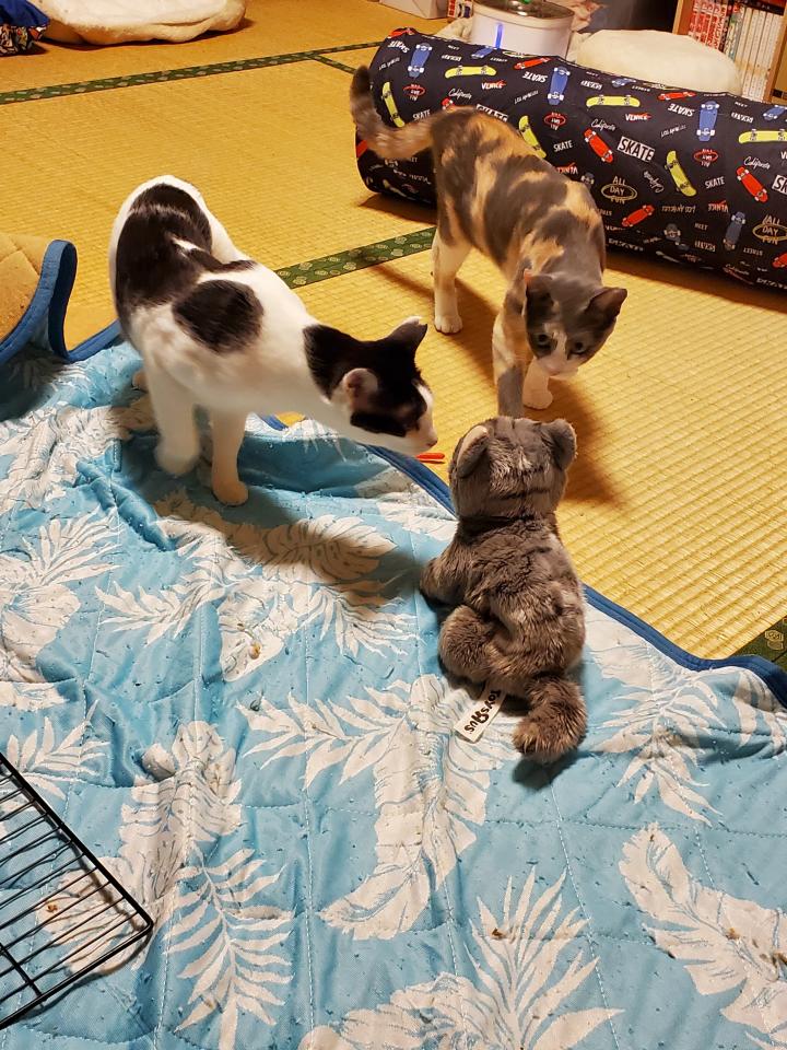 匂いを嗅いだら、二匹共、逃げ出してしまいました。