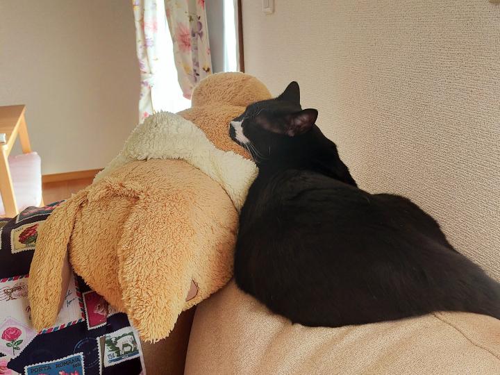 🔸おっきなぬいぐるみを枕にしてお昼寝😸💕