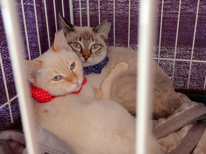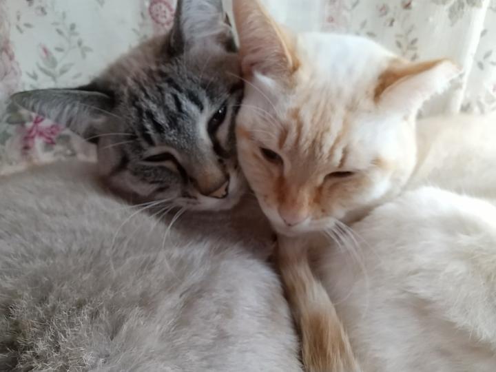 今はお兄ちゃんに「しつこいニャ、シャーッ😾」と1日数回怒ってますが、基本は仲良し😊