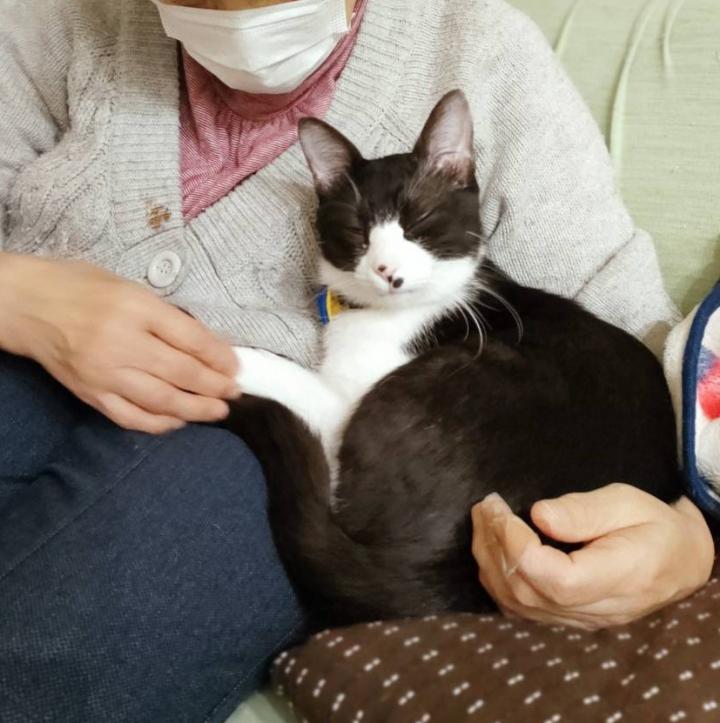 すっかり家に慣れてやんちゃんしながら甘えて膝で寝ているゆーちゃんを抱っこしながら