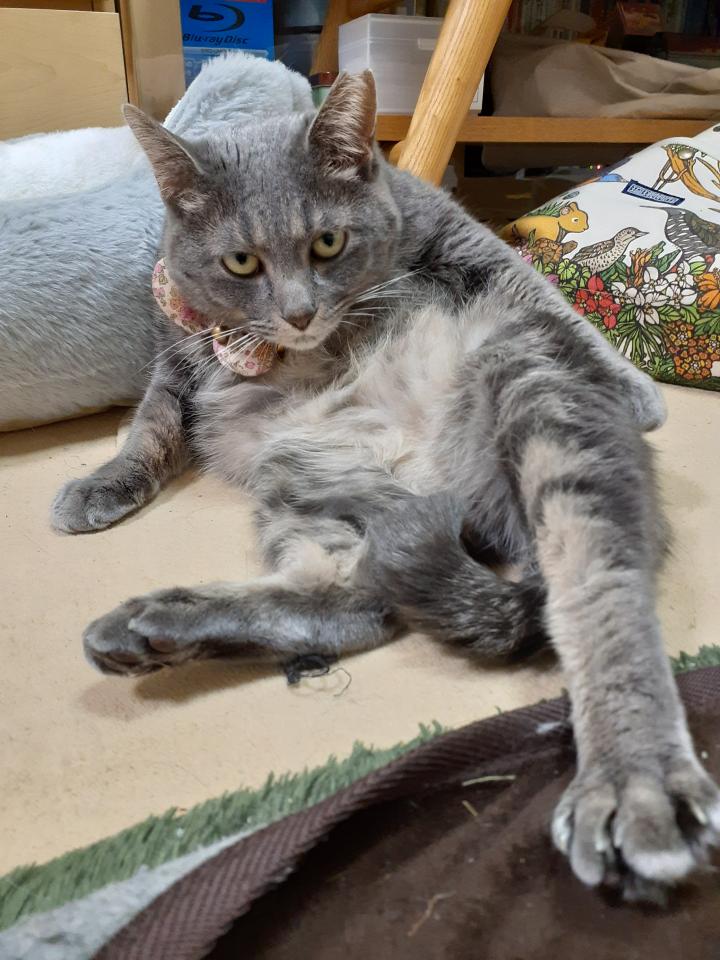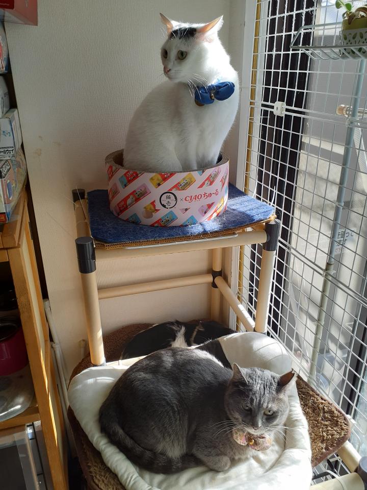 猫部屋のマット、爪研ぎされてボロボロになってるから掃除して新しいのに変えて、保温シート敷いて(手作りの、ね)とか考えてたのに。
