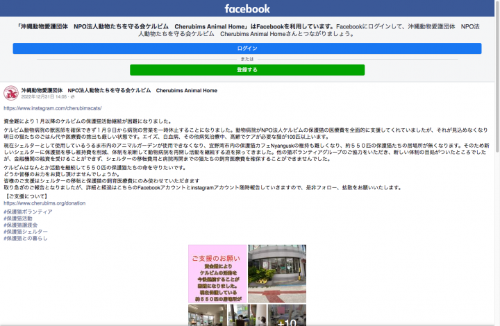 沖縄の『NPO法人 動物たちを守る会ケルビム』、資金難に陥っています。